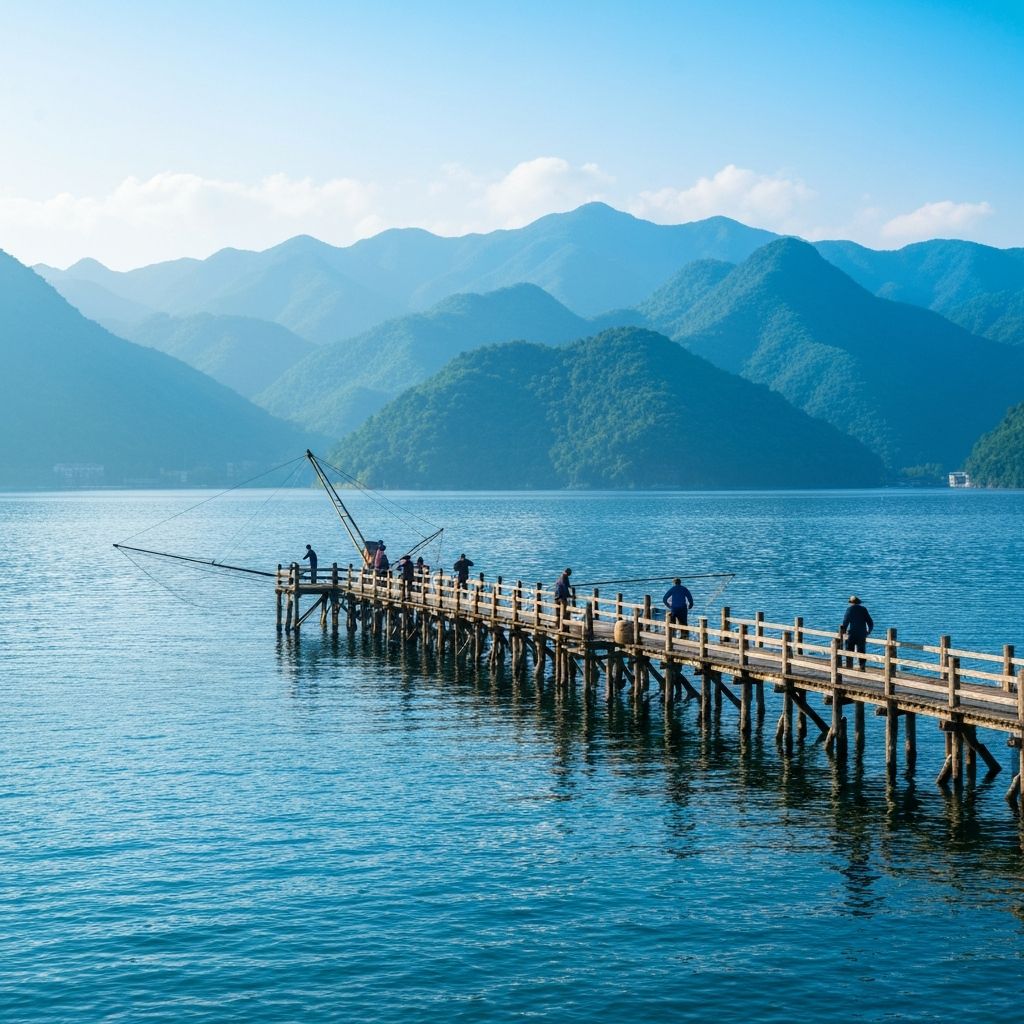 在大型水库或湖区钓鱼,大雾天船只出行存在安全隐患。岸边钓鱼相对安全,但选位要避开水流复杂的区域,脚下的路况也要提前确认——别为了找个好钓位,在浓雾里乱走摔一跤。